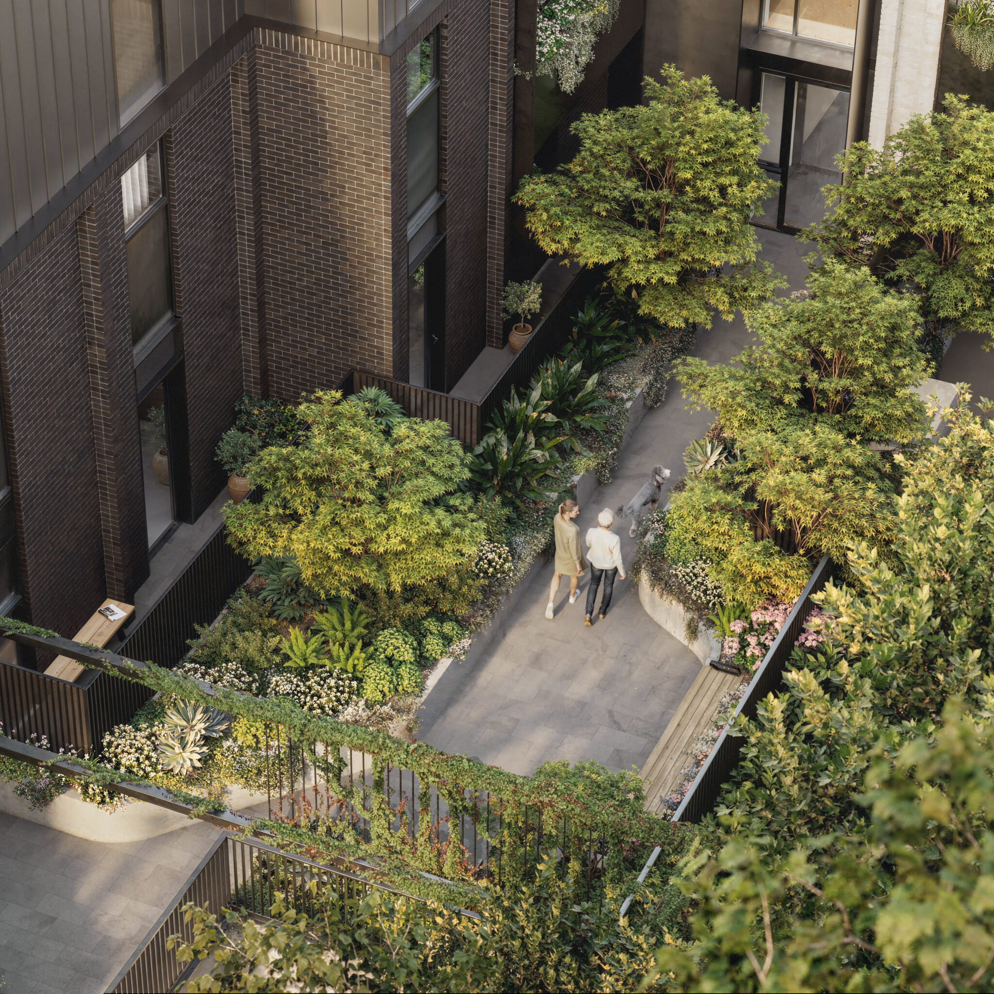Local heritage architecture also influences common internal spaces. From the Canterbury Road entrance, residents and guests are welcomed by a beautiful foyer which features a striking double-height atrium, timber panelled walls and cozy seating.