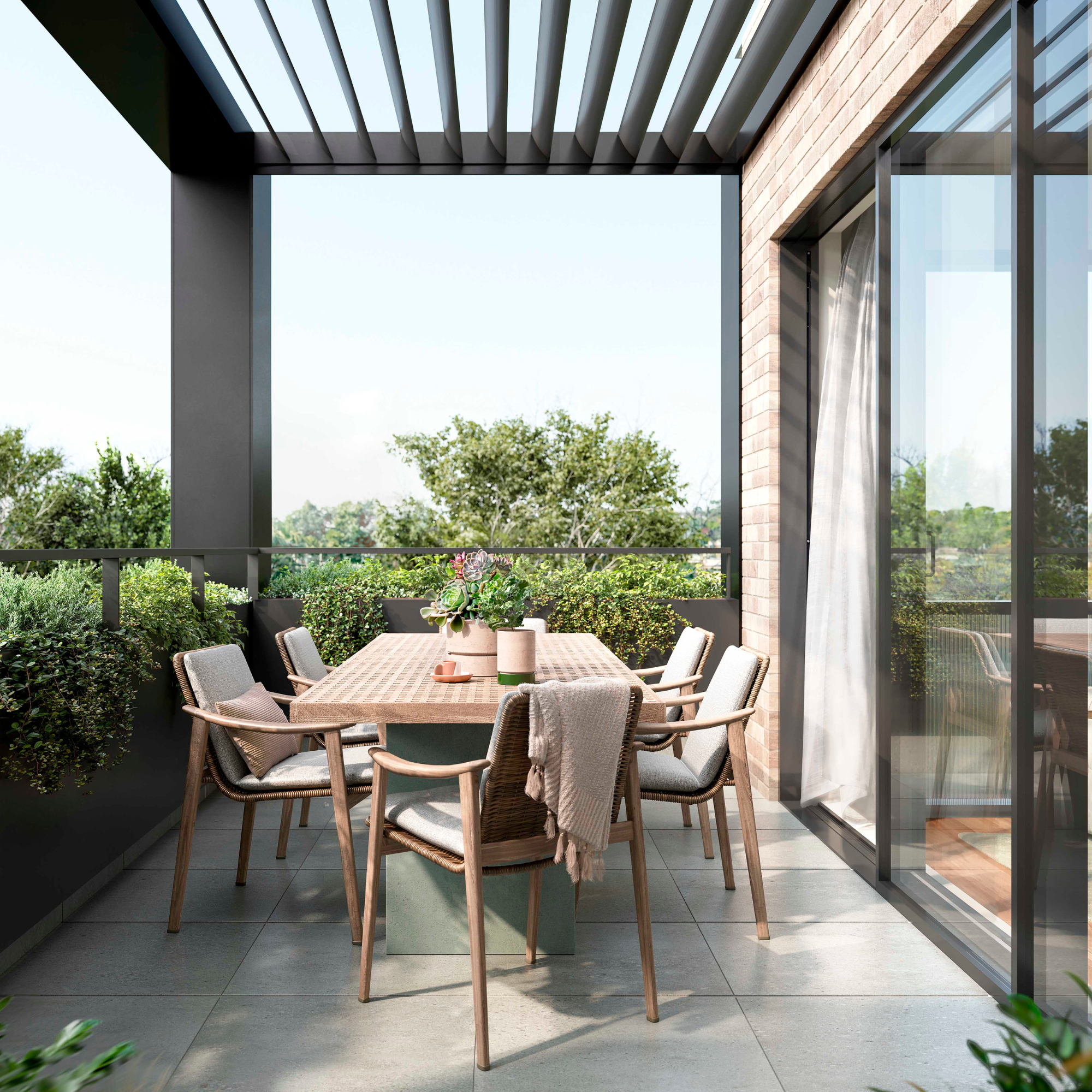The contemporary architecture is expressed through refined proportions, elegant detailing and carefully layered brickwork—creating a timeless aesthetic that feels both modern and enduring.